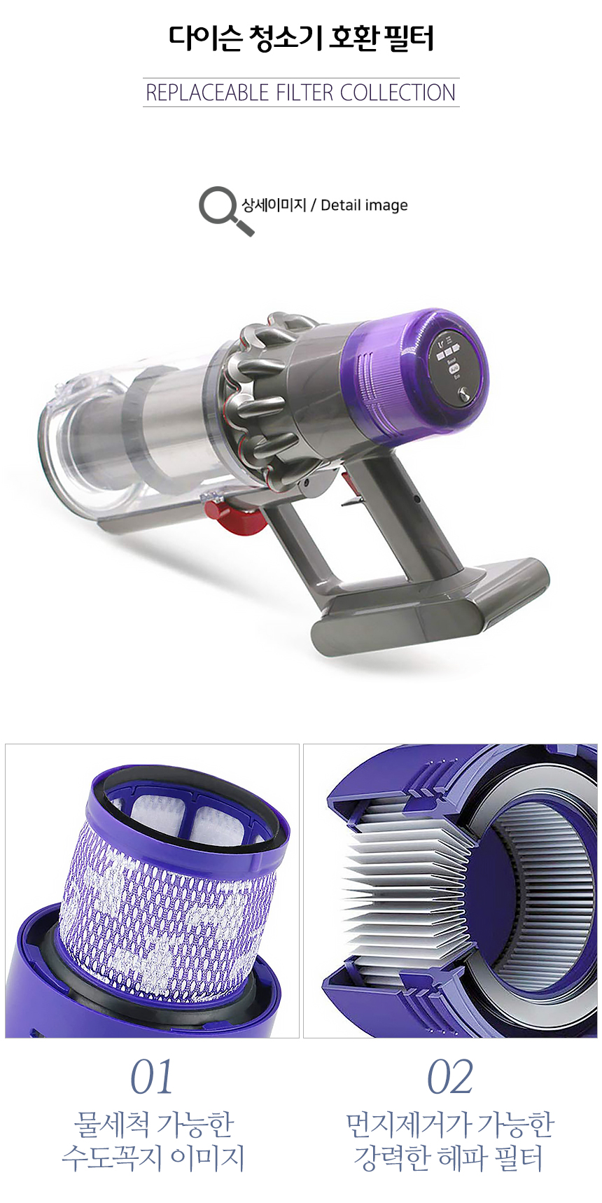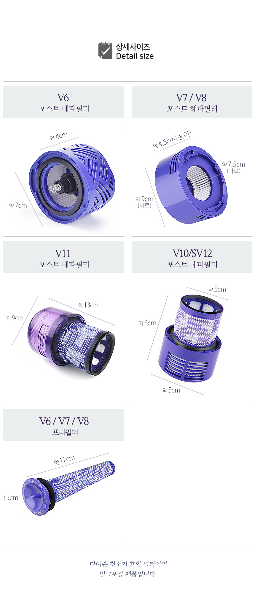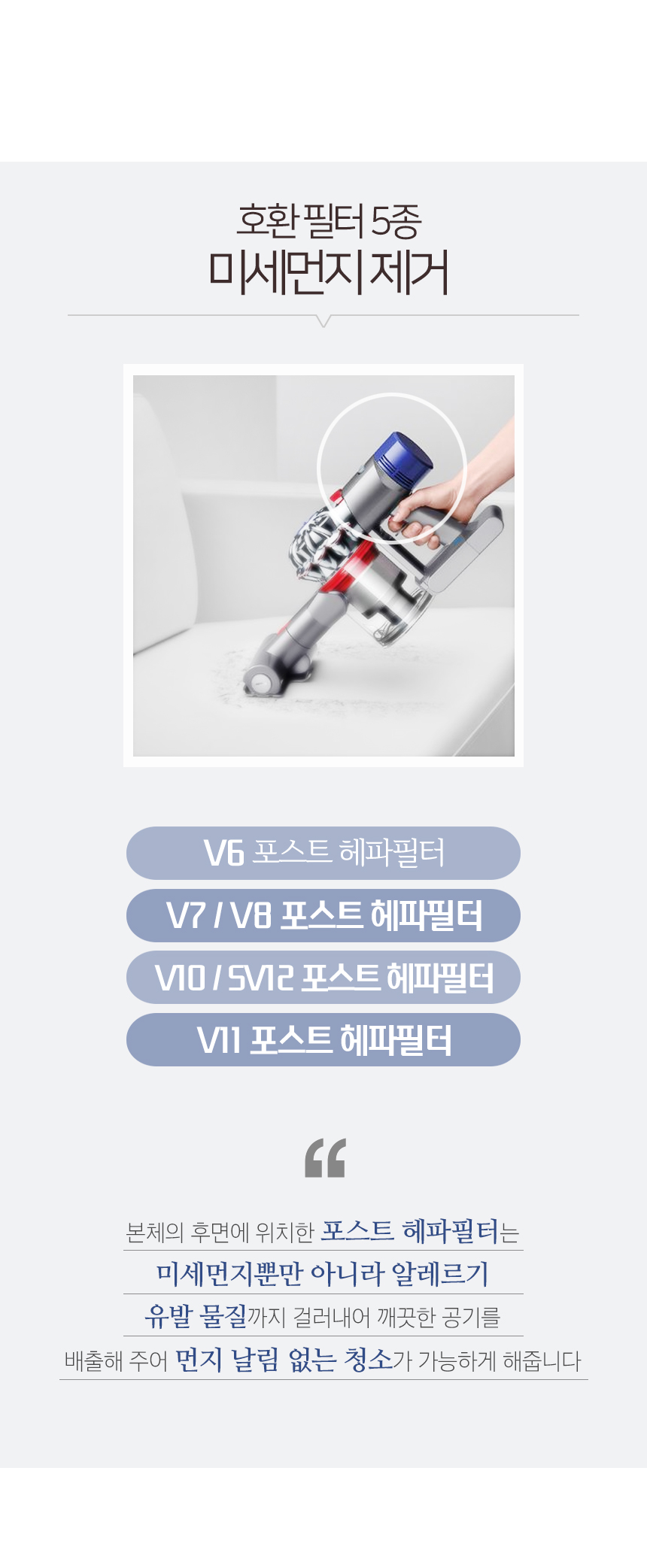 [호환] 다이슨 무선 청소기 V6 V7 V8 V10 필터 리필 교체 포스트 헤파